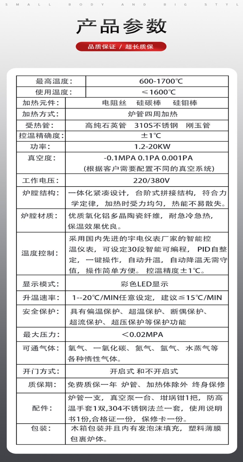 管徑和加熱區尺寸可根據客戶要求定制!